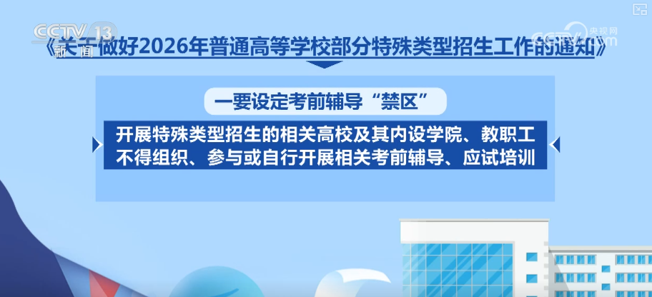 對于2026年普通高校部分特殊類型招生工作,《通知》要求,各地各有關(guān)高校建立有效監(jiān)督機制,暢通社會監(jiān)督渠道,及時公開公示有關(guān)信息,主動接受監(jiān)督。未按要求公示的考生一律不得錄取,牢牢守住公平公正底線。